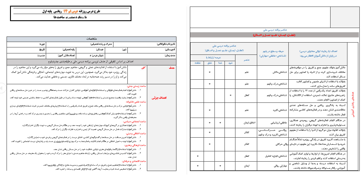 طرح درس تمام ساحتی حدس و آزمایش ریاضی پایه دوم - ویژه ساحتهای ششگانه تعلیم و تربیت
